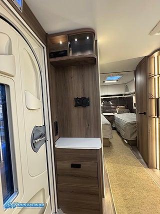 Modellår: 2026, Värmesystem: ALDE - vattenburen centralvärme, ALDE - vattenburen centralvärme, Gasoluttag i koffert med snabbfäste, Stort kylskåp med separat frys, Eluttag för TV-antenn/12V/230V - utvändigt, Färskvattentank - frysskyddad, Spillvattentank - frysskyddad, Fönster med mörkläggning/myggnät, Skofack