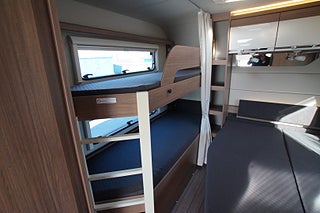 Nyskick! Vinterisolerad. Perfekt för året-runt-bruk., Planlösning med fransk dubbelsäng, våningssängar och stor U-soffa fram., Alde vattenburen värme. Elpatron., Kylskåp 177L med Separat frys., Trådlös Enduro EM313A helautomatisk mover hjulmotor., Förtält Inaca Fjord 300 coal 3m. Helt nytt!, Totalvikt höjd till 2000 kg.