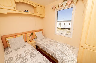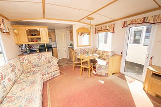 Begagnad villavagn på 11.26 x 3.7 meter. Med två sovrum med plats för 4 bäddar. Vardagsrum: Hörnsoffa med elkamin. Matplats: Bord och soffa. Kök: Rymligt med över- och underskåp, diskbänk och gasspis med ugn plats för ett kylskåp. Sovrum1: En dubbelsäng, garderober och sminkbord. Sovrum 2: Två enkelsängar med sängbord, överskåp och garderob. Badrum: WC, dusch och badrumsskåp. Badrum 2: WC och handfat.