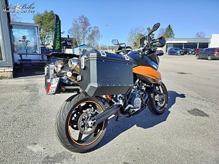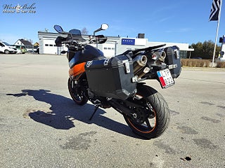 KTM 990 SMT Adventure från 2011 i mycket fint skick som kombinerar sportig körglädje med praktisk komfort. Den starka V-twin motorn på 116 hk levererar pigg respons och härligt tryck genom hela registret vilket gör den lika rolig på kurviga landsvägar som stabil på längre turer., Motorcykeln har gått 2053 mil och säljs nyservad. Besiktad till 2027-07-31 så det är bara att köra och njuta utan bekymmer under lång tid framöver., Utrustad med robusta packlådor bak i aluminium som gör den perfekt för weekendresor eller längre äventyr. Den upprätta körställningen ger god komfort samtidigt som chassit bjuder på stabil väghållning., En välskött och mångsidig hoj i bra skick som passar både för aktiv körning och touring., Välkommen in till oss på West-Bike för visning och mer info. www.west-bike.se