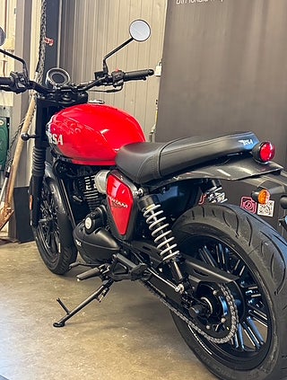 BSA Bantam 350 förenar ett ikoniskt arv med nutida teknik i en lättkörd, stilren och användbar motorcykel. Resultatet är en modern klassiker som passar lika bra för vardagspendling som för helgens utflykter – perfekt för dig som vill ha karaktär, kvalitet och ren körglädje utan krångel.