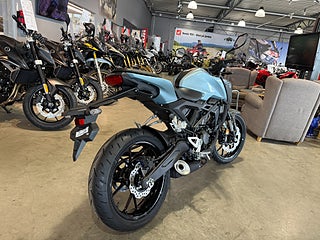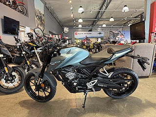 Hondas unikt utformade Neo Sports Café 125cc-maskin har 5-tums färg TFT-mätare ärvd från CB1000R. Standard specifikation på toppnivå inkluderar en-cylindrig DOHC 4V-motor, högkvalitativ 41 mm Showa "Separate Function" Big Piston (SFF-BP) USD-gafflar, radiellt monterad fyrkolvs främre bromsok som fungerar med flytande skiva, plus IMU-kontrollerad ABS. 5 års Honda garanti. Honda CB125R CB125F CB125 R F CB 125R 125F CB 125 R F Street Touring Finansiering Vi har nöjet att kunna erbjuda denna Honda CB125R 2026. Vi köper – förmedlar - förmedling och byter in er mc, ATV eller moped. En administrationsavgift på 395:- tillkommer på alla våra fordon. Varmt välkomna önskar vi på Ahlqvist motorcyklar / Honda Mc Center Göteborg. Ring oss på 031-7466070