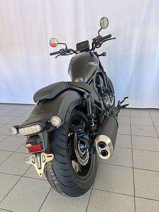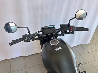 Den parallelltwin på 1084 cc levererar starkt vridmoment och en följsam kraftleverans som passar lika bra för avslappnad cruising som för mer aktiv körning. Med låg sitthöjd och neutral körställning är Rebel 1100 både lättkörd och trygg – oavsett erfarenhetsnivå.