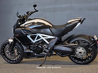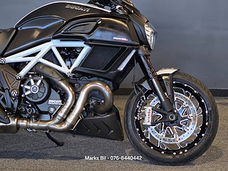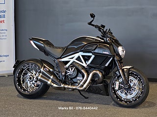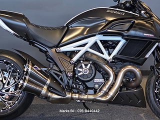 Nu har vi fått in en otroligt välvårdad Ducati Diavel Carbon med smidda fälgar fram och bak. Termignoni avgassystem. Elektronisk automatisk kedjesmärjare. All service protokoll samt instruktionsbok och papper från dagen den köptes som ny finns. Stor service med kamremsbyttet är gjort 2023. En ren och fin carfax historik. Denna hojen är utrustad med all Carbon delar som går att ha. Hojen är i Mint Condition!