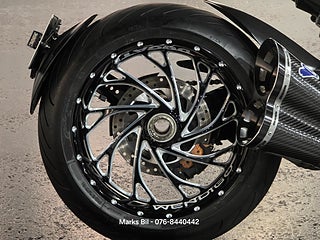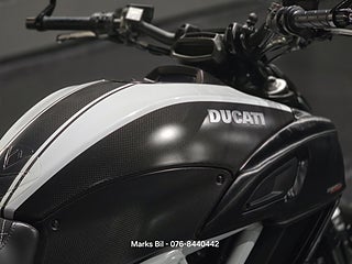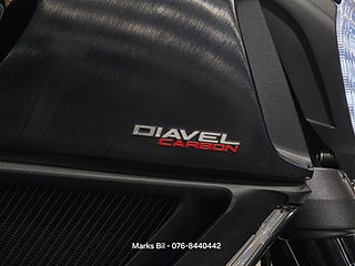 Nu har vi fått in en otroligt välvårdad Ducati Diavel Carbon med smidda fälgar fram och bak. Termignoni avgassystem. Elektronisk automatisk kedjesmärjare. All service protokoll samt instruktionsbok och papper från dagen den köptes som ny finns. Stor service med kamremsbyttet är gjort 2023. En ren och fin carfax historik. Denna hojen är utrustad med all Carbon delar som går att ha. Hojen är i Mint Condition!