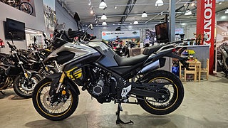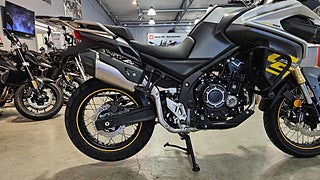 Voge DS525X är en äventyrsmotorcykel som kombinerar modern teknik med mångsidighet och prestanda för både väg- och terrängkörning. Utrustad med en vätskekyld 494cc parallelltwin-motor som levererar 48 hästkrafter och ett vridmoment på 45 Nm. Urkopplingsbart ABS, urkopplingsbar traction control (TCS) och två körlägen, så att du kan anpassa hojen efter alla förhållanden. En 7-tums LCD-färgdisplay med integrerad navigering, däcktrycksövervakning och kraftfull LED-belysning med dimljus. Dessutom är DS525X utrustad med en inbyggd HD-frontkamera, centralstöd och skyddsbågar, hasplåt som standard.