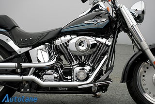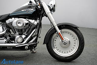 Denna klassiska och kraftfulla Fat Boy är utrustad med en stark Twin Cam 96-motor (1584 cc) och 6-växlad låda som ger en mjuk men rå kör upplevelse.