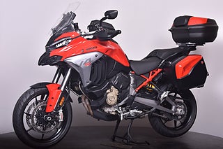 Ducati Multistrada V4 S Sport facelift 2025 i Travel & Radar utförande med den nya snygga smidda fälgen!. Denna MC kan finansieras fr. XXXX :-/mån *Nästa besiktning senast: 2029-03-31 *Senaste service: 101 mil / 04/25/2025 *Nästa service: 1601 mil / 04/25/2026 *Effekt: 170 hk. *Garanti: Fabriksgaranti t.o.m. 03/12/2029 *Utrustning: Riding mode (Urban/Enduro/Touring/Sport) Power modes (low/medium/high), connectivity control unit (CCU), Ducati Multimedia system (DMS), Ducati skyhook suspension (DSS), Ducati Traction Control (DTC), Ducati wheelie control (DWC), Daytime running light (DRL), Ducati Cornering light (DCL), Front collision warning (FCW). Ducati vehicle observer (DVO), Ducati brake light EVO (DBL), Vehicle Hold Control (VHC), Ducati Quickshifter (DQS), Adaptiv farthållning (ACC), full-map navigationssystem, Rear cylinder deactivation, bump detection. *-Utrustningsnivå: Travel & Radar Radar system, tankväska *Mc:n har genomgått ett inbytestest på 48 punkter utan anmärkningar. *Bra att veta: Såld ny av oss. endast en tidigare brukare.Framdäck 70% kvar. Bakdäck 70% kvar. Fint skick! Instruktionsbok- servicebok (digitalt MyDucatiApp) och extranyckel finns. Månadskostnad baserat på: 40% Kontantinsats. 50% restvärde 36 månader löptid. Detta fordon kan köpas online på www.biketrollhattan.se/mconline, där kan ni också se mer om finanslösningar och transport av ditt fordon. (multistrada v4 v4s v4-s ms mts v2 1200 1260)