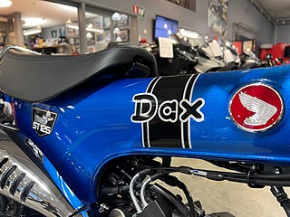 Nya Dax är en avskalad och robust maskin med massor av okomplicerad körglädje. Den bygger på en ram av pressad stålplåt, 31 mm inverterad framgaffel, 12-tumshjul och en luftkyld fyrtaktare med två ventiler, fyra växlar och automatkoppling. Hojen är utrustad med moderna funktioner som LED-lampor runtom och digital instrumentskärm. Baktill sitter ett praktiskt passagerarhandtag och den klassiska designen är en flört med det tidlösa originalet.