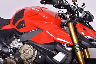 Lågmilad Streetfighter V4S i mycketfint skick -Slip-on från Dominator medföljer vid sidan av!*Nästa besiktning senast: 2026-05-31 *Senaste service aukto-verkstad: 512mil + 2025-02-28 *Nästa service: 1512mil + 2026-02-28 *Effekt: 208hk *Garanti: 3 mån SMR-garanti, max 500 mil. *Utrustning: Tailtidy, Medföljer även ett slipon som inte är monterat *Mc:n har genomgått ett inbytestest på 48 punkter utan anmärkningar *Bra att veta: Framdäck 70% kvar. Bakdäck 80% kvar. Fint skick! Instruktionsbok- servicebok och extranyckel finns. Detta fordon kan köpas online på www.biketrollhattan.se/mconline, där kan ni också se mer om finanslösningar och transport av ditt fordon. (STREETFIGHTER V4S. STREETFIGHTER V4. V 4 S . Ducati. Panigale V4. Panigale. V4. Superbike. Sporthoj.)
