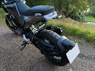 robust och lekfull och definieras av sina rena linjer, robusta exteriör och iögonfallande utseende. Med sitt lätta chassi, smidiga växellåda och banbrytande teknologi ger den en dynamisk körupplevelse med 15 kvicka hästkrafter och bara 30 mil på mätaren!