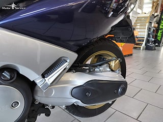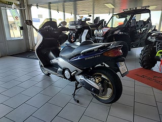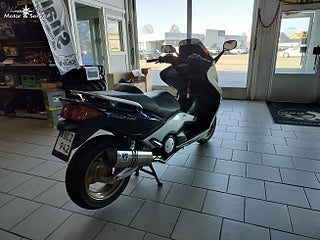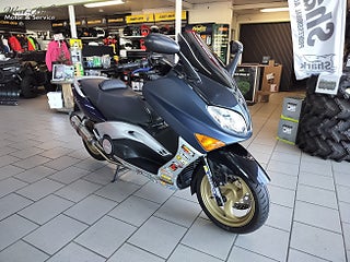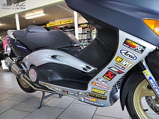 Yamaha XP500 T Max från 2001 - En blivande klassiker i fint skick., En populär och kraftfull maxiscooter med sportig karaktär. T-Max erbjuder riktigt bra komfort stabila köregenskaper och automatväxellåda vilket gör den perfekt för både pendling och längre nöjeskörning., Utrustad med en vätskekyld tvåcylindrig fyrtaktsmotor på 499cc och 39hk samt automatisk CVT växellåda och remdrift. Skivbromsar fram och bak ger bra bromsförmåga och toppfarten ligger runt cirka 160 kmh. Bränsletanken rymmer 14 liter och motorcykeln erbjuder en bekväm sittställning för två personer samt praktisk förvaring under sadeln., Säljes nyservad samt nybesiktad., Välkommen in till West-Bike för mer information eller visning. www.west-bike.se