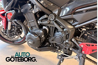 Den är smakfullt stylad med ett SC Project helsystem som ger ett rått men samtidigt välbalanserat ljud. Utöver det är quickshift eftermonterad vilket ger en betydligt sportigare och smidigare körkänsla.