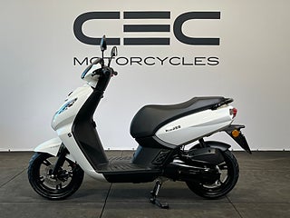 Peugeot Kisbee har mycket goda förvaringsmöjligheter och ett plant golv. Sadelhöjden är 770 mm och har en upprätt körställning som ger dig en stabil och säker körställning med mycket god överblick av dina medtrafikanter. Denna modell har en 6.3 liters tank, 12 tums aluminiumfälgar och en analog instrumentering.