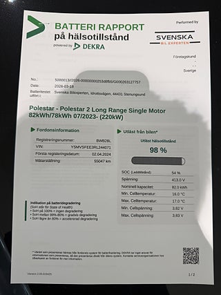 En populär bil med lång räckvidd. Utrustad med bl.a , Elektrisk utfällbar dragkrok, Pixel LED strålkastare, Pluspaket, Pilotpaket, Klimat paket med värmare, 360°-kamera, Harman/Kardon sound, El stolar fram med minne för passagerare, Komfortöppning, 19" original POLESTAR lättmetallfälgar, 19" Polestar vinterhjul, BLiS, 360 kamera, och mycket mer.