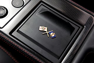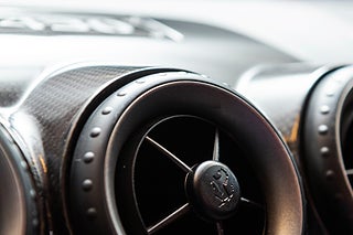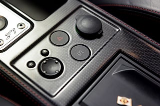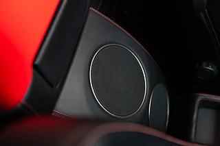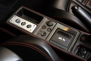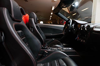 Interiör: Svart skinnklädsel med röda sömmar samt interiört kolfiberpaket.