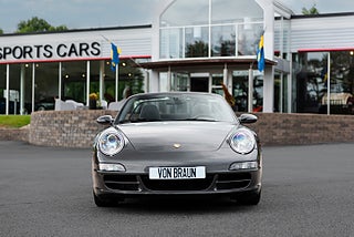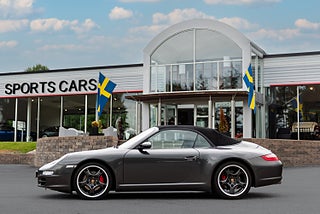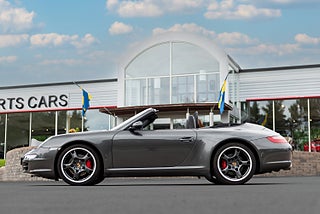 Upplev körglädje i dess finaste form med denna imponerande Porsche 911, 997 Carrera 4S Cabriolet av årsmodell 2008. Den eleganta grafitgrå kulören är L23F Slate Grey med svart läderklädsel och svart sufflett. Bilen levererades ny i Dortmund i Tyskland i slutet av oktober 2007 men exporterades redan 2010 till Sverige. Denna skönhet har endast haft två ägare sedan den kom till Sverige. Bilen är i ett mycket fint skick och fri från skador. Lackering på hela frontpartiet och nedre sidor av kaross har varit väl skyddade med stenskottsfolie och saknar därför skador. Folien har precis demonterats och lackeringen polerats. Den håller därför närmast samma finish i lackeringen som när den var ny.