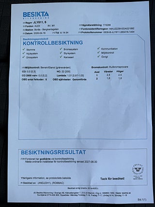 Bilen är ny besiktad i 16-04-2026 Besiktas senast 30-06-2027