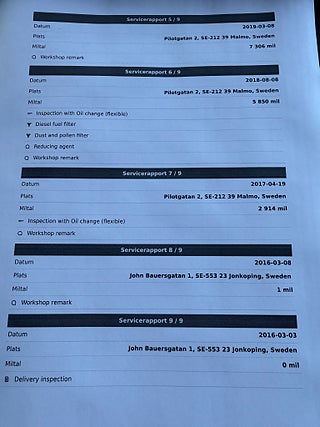 Fordonets historik - 14 händelser finns registrerade