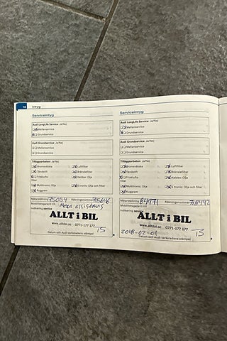 Fordonets historik - 29 händelser finns registrerade
