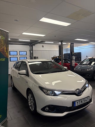 Toyota Auris Touring Sports Hybrid e-CVT, 136 hk 2018 en stilren och bränsleeffektiv kombibil som kombinerar hög komfort med modern teknik. Den kraftfulla hybridmotorn på 136 hk tillsammans med den smidiga e-CVT-växellådan ger en dynamisk och ekonomisk körupplevelse. Bilen är svensksåld och fullutrustad, vilket gör den till ett utmärkt val för dig som söker en bil med både funktionalitet och hög säkerhet.