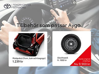 , Antisladdsystem med styrassistans (S-VSC),Aktivt krockskyddssystem med korsningsassistans för bilar,Ratt med styrningskontroll för adaptiva farthållaren,Driver Attention Alert uppmärksammar föraren att ta en paus,Farthållare intelligent aktiv (iACC),Golvmattor i tyg (förare & passagerare fram),Reservhjulet ersatt av reparationskit,Passagerarkrockkudden fram urkopplingsbar,Kromdekorerad knapp för luftkonditionering,Solskydd passagerare fram med spegel,Ratt med styrningskontroll för körfilsvarning (LDA),Kombinationsljus bak LED och glödlampa,Strålkastare med \"Follow-me-home\"-funktion,Luftintag på sidorna med svart infattning,Ratt med styrningskontroll för röstigenkänning,Baksäte andra sätesraden 50/50-delning,Ratt med kontrollknapp för hastighetsbegränsning,Bromsljus som blinkar vid kraftig inbromsning för att varna bakomvarande fordon (EBS),Strålkastare med manuell nivåjustering,Backkameradisplay integrerad i audioskärmen,Passagerarsäte fram manuellt skjutbart,Informationsdisplay med 42-tums skärm,Aktivt krockskyddssystem med väjningsassistans (detektion av fotgängare cyklister och stillastående fordon),Förberedd för dragkrok (endast cykelhållare),Smartphone Integration (Apple CarPlay och Android Auto),Ratt med styrningskontroll för telefon,Ratt med styrningskontroll för audio,Aktivt krockskyddssystem (PCS) med fotgängar- och cyklistdetektion,Vindrutetorkare med variabel intervallfunktion,Ratt med styrningskontroll för informationsdisplayen,Toyotas varumärke 1 st fram och 1 st bak,Låsningsfria bromsar (ABS) med elektronisk bromskraftsfördelning (EBD),Ratt med styrningskontroll för hastighetsbegränsaren,Passagerarsäte fram manuellt fällbart,Varningssystem för lågt däcktryck (TPWS),Backkameradisplay med statiska hjälplinjer