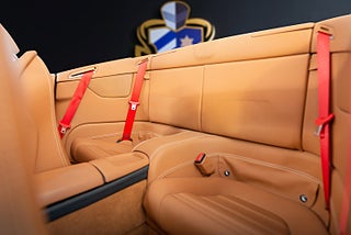 Denna svensksålda Ferrari California är både högpresterande och praktisk som med sitt baksäte gör att man även kan få med sig ytterligare två passagerare, perfekt för familjen med småbarn eller paret som vill ta med golfbagen på helgresan. Taket är folierat svart och exteriört är bilen lackerad i den klassiska färgen Rosso Corsa som ihop med sin ljusbruna interiör skapar en mycket attraktiv färgkombination. Dessutom är bilen extrautrustad med bland annat gula bromsok (Giallo Modena), gul varvräknare, röda säkerhetsbälten, farthållare, Scuderia sköldar på framskärmarna och diamant finish sportfälgar.