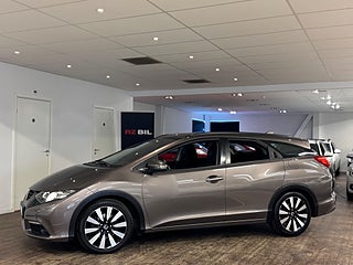 Välvårdad Honda Civic Tourer 1.6 i-DTEC Sport med 120hk. Bränslesnål, rymlig och pålitlig kombi med sportigt utseende och mycket utrustning.