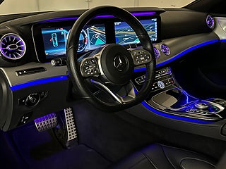 Exteriören har ett distinkt och dynamiskt utseende med AMG-stötfångare, sidokjolar och snygga lättmetallfälgar som ger bilen ett sportigt uttryck. Takluckan skapar en ljus och luftig atmosfär, perfekt för att njuta av varje säsong. På insidan hittar du en exklusiv och bekväm kupé med eljusterbara lädersäten, sportiga AMG-detaljer och en avancerad ambient belysning. Infotainmentsystemet och ljudsystemet ger en fantastisk ljudupplevelse på alla resor. Dessutom erbjuder bilen smart teknik som smartphone-integration och navigationssystem.