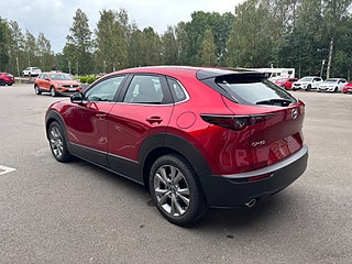 Omåttligt populära Mazda CX-30 i Centre-Line utförande och i färgen Soul Red Crystal.