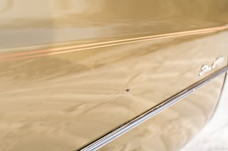 Utvändigt: lacken är helt ok, det finns tecken på tidig omlackering i originalkulör med målad pinstriping som förstärker bilens utseende. Det finns några märken (se bilder) samt vissa mindre rostangrepp men överlag är helhetsintrycket för hela bilen oerhört positivt, underredet är jättefint utan rostangrepp. Den här bilen kommer ge uppmärksamhet när man åker runt i sommar. Däcken i fint skick.