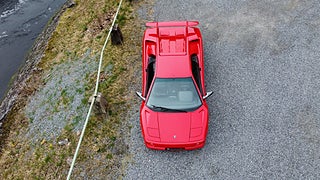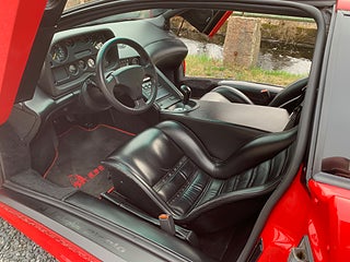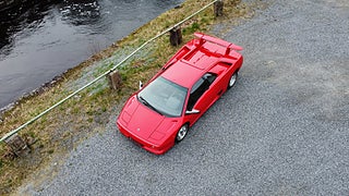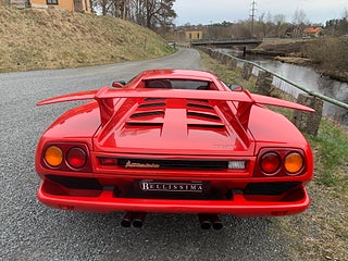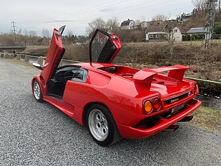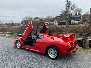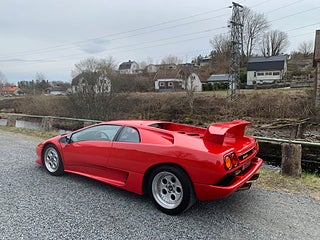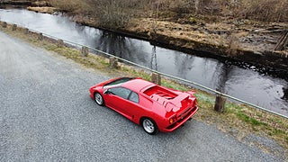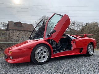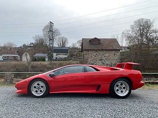 En tysksåld Lamborghini Diablo -91 i bra bruksskick med full servicehistorik. Den exteriöra färgen är klassiska "Diablo Rosso" och interiören är i svart läder med svarta mattor. Original serviceböcker i original lädermapp samt 2 st. nycklar och original verktygsset finns. Eftermonterad Alpine stereo med original Alpine slutsteg. Eftermonterad vinge. Bilen har kort utväxling vilken gör den rappare i acceleration. Uppdaterad med mekaniska kedjesträckare. Bromsarna fram har uppgraderade aftermarket bromsskivor av bättre typ är original. Går fint i motor och växellåda och väghållningen är bra. Det finns en del skavanker i lack och inredning samt lite småfix men bilen är helt brukbar. De interiöra panelerna med svart mjuklack är åtgärdade. Bilen är skattebefriad och besiktigad utan anmärkning t.o.m. 2028-01-31. Visas efter tidsbokning. Bilen säljs på uppdrag av kund.