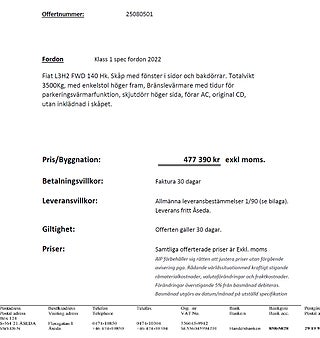Totalpriset för bil och påbyggnation enligt offert från AIP Conversion är 916.890 kr exklusive moms.