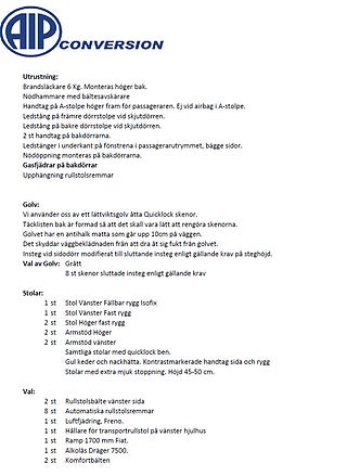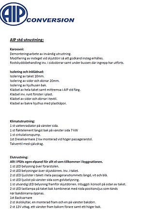 Byggnation utförd av AIP Conversion i enlighet med Specialfordon 2022 framgår av byggnationsbeskrivning/offert 25080501(se bilder).