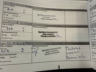 Fordonets historik - 13 händelser finns registrerade