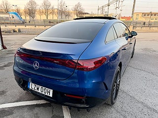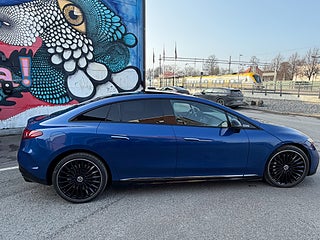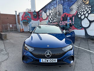 En av de mest rätt specificerade Mercedes EQE 350+ på marknaden – med AMG Line, AIRMATIC luftfjädring, panoramatak och massage i stolarna.