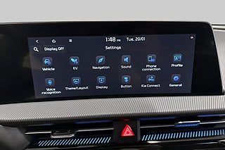 Finansiering genom Kia Finans, 19\" aluminiumfälgar 235/55 R19 (Kumho,2 x 12.3\" välvda pekskärmar inklusive,10.5 kW 3-fasladdare (Ombordladdare),Autobroms med fotgängar- & cyklistskydd,Automatisk avbländbar innerbackspegel,Delläderklädsel (artificiellt läder samt tyg),Elinfällbara elinställbara & uppvärmbara,Energibesparande värmepumpsystem för,effektiv uppvärming/nedkylning av kupén,Elförarstol RELAXATION med minnesfunktion,Mode 3 laddkabel med Typ 2 kontakt (3-fas),Ratt läderklädd (veganläder) och eluppvärmd,Rattpaddlar för nivå av bromsenergiåtervinning,Trötthetsvarnare (Driver Attention Warning),Vätskekylt batteri som tillåter upprepade,Around View Monitor kamera med 360°-vy,Dödavinkelvarning med bild i digitala klustret,Exteriöra design detaljer i blanksvart,Trådlös mobilladdare för smartphones med Qi-std.,Digitala LED \"Matrix\" - strålkastare med,Dödavinkelvarning med bild i digitala,Klädsel i mockaimitation samt veganläder