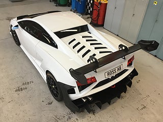 Äkta original Lamborghini racerbil 2009 uppdaterat till 2014 modell --givetvis finns delar för återställande till 2009 spec. om så önskas-- senaste uppdateringar gjorda 2018 Brembo brake system Racing muffler Air box kit Air Jack System med mera. Nu har ni chansen att köpa en riktigt grym racer med endast 130 mil finns extra delar och godis helt klart en kandidat i en lambo samling. Avdragbar moms för momspliktiga och för export.