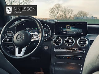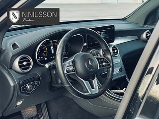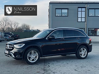 Mercedes-Benz GLC 300 e 4MATIC 9G-Tronic Laddhybrid Facelift 320hk från 2021. En välutrustad Premium SUV med hög komfort, fyrhjulsdrift, Värmare (el)-fjärrstyrd app) & bra markfrigång, 9-stegad automatlåda med låga drifkostnader & en fordonskatt på bara 360kr. Panoramaglastaket är öppningsbart och skapar ett ljust, luftigt kupéklimat – kompletterat med svart innertak & panelmaterial av Antracit öppenporig svart ek för rätt kontrast och premiumkänsla. Kupén bjuder på helläderklädsel med läderklädd instrumentbräda, eljusterbara stolar med minnesfunktion och ambient lighting med 64 färgval – här sätter du själv stämningen, från diskret business till kvällslounge.