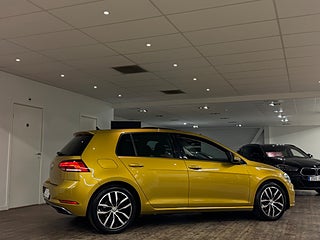 Volkswagen Golf 1.0 TSI DSG 110hk i den exklusiva färgen Kurkuma Yellow Metallic, en stilren och välutrustad halvkombi som kombinerar premiumkänsla med låg bränsleförbrukning. Utrustad med panoramaglastak, digital cockpit, backkamera, adaptiv farthållare och Apple CarPlay/Android Auto. Automatväxlad (DSG) för smidig körning och en förbrukning på endast 0,48 l/mil gör den både ekonomisk och bekväm i vardagen. Modern design, välskött inredning och pålitlig TSI-motor gör denna Golf till ett attraktivt val i mellanklassen.