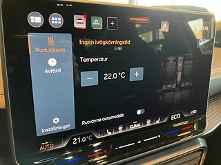 I den fullspäckade utrustningslistan märks bland mycket annat Intelligent Drive-paket, infällbar dragkrok, parkeringsklimatisering/uppvärmning, det stora navigationssystemet med 13 tums skärm, Intelligent Park Assist som kan parkera bilen åt dig, digital instrumentering / Cockpit med kartvisning, den adaptiva och ställbara chassiregleringen DCC som kan ställas in för maximal fjädringskomfort eller sportig körning med Cupra-läge, elstol förare med minne, LED-strålkastare med helljusassistans och flytande blinkers med Coast-to-coast-ljus bak och ljusanimation, elbaklucka som kan öppnas och stängas med fotrörelse under stötfångaren, rattvärme, mörktonade rutor, backkamera, adaptiv farthållare (förutseende), Side Assist Dödavinkel-varnare, Travel Assist, 3-zons Climatronic, trådlös telefonladdare, Isofix-fästen även fram, 230V eluttag, trådlös Apple Carplay, Android Auto och nyckelfritt system med Keyless Entry!