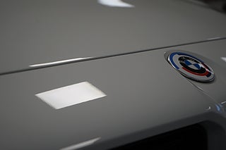 Bilen är lackerad i alpinvit med svarta detaljer. Kolfibertak. 50-års jubileum BMW M emblem. Tonade rutor. Interiören är i svart läder med blåa och röda kontraster. Kolfiberpaket interiört. Svart innertak. Helrätt färgkombination som ger ett maffigt utrryck!