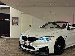 BMW M4 Cabriolet / 431hk / DCT / Navigation Professional / Harman Kardon / Head-Up Display / Adaptiv M-chassi / Backkamera / Parkeringssensorer (PDC) / Adaptiva LED-strålkastare / Driving Assistant / Filbytesvarning / Trafikskyltsavläsning / Farthållare med bromsfunktion / Helljusassistent / Regnsensor / Klimatanläggning (AC) / Komfortstolar el med minne / Svart Merinoläder /