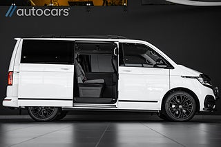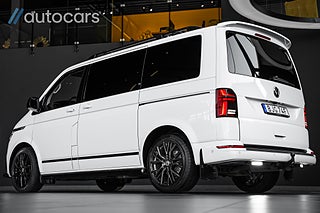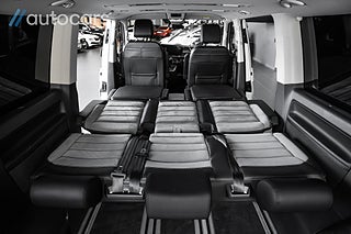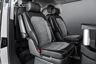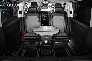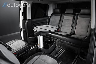Här erbjuds en otrolig specifikation med tillvalen många bara drömmer om: Fyrhjulsdriven - 4Motion, Stora motorn på 204hk, Adaptiva chassiregleringen DCC, Highline, Svarta 19" Brock wheels, Frontbåge med dubbla Alpha NBB LED, Svarta Sidorör och Lowbar, Takvinge, Huv och vindskydd, LED backljus, Komfortpaket, Pluspaket, Elektriska skjutdörrar - fjärrstyrda samt från kupén, Elstyrd förarstol med minne, Komfortstolar med dubbla armstöd, Dekorlister Carbon, Navigation Discover Media Pro" inkl. Streaming & Internet, Adaptiv farthållare, Backkamera med PDC fram & bak, Apple Carplay & Android Auto, Fönsterpaket med akustikrutor, LED-strålkastare & LED bakljus, Dieselvärmare tid & fjärrstyrd, Exteriört stylepaket, Avtagbar dragkrok, Side assist, Rail och takräcke, Elstyrd baklucka, Klimatanläggning fram och bak, Fällbar säng, Klädsel Alcantara/Läder. Tack vara de justerbara multifunktionsbordet samt flytt och vändbara stolar ges möjlighet för hela familjen att umgås och äta lunch tillsammans.