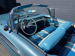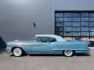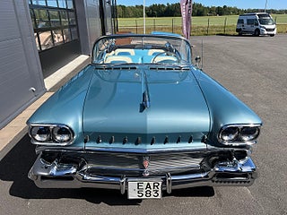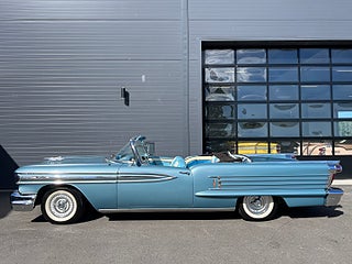 Oldsmobile Ninety Eight Cabriolet från 1958 i en mycket snygg blå kulör. Interiören är 3tonad blå och vit. Utrustad med bland annat Elstyrd Cab, Elhissar, Courtesy Lights, Retrosound Stereo, Elstyrd soffa, Servobromsar och servostyrning. Dimljus, Whitewalldäck, Sixpack, Avtagbar dragkrok, Fenderskirts medföljer.
