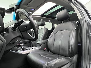 Interiören erbjuder hög komfortnivå med svart skinnklädsel, elmanövrerade framsäten där förarstolen har minnesfunktion samt keyless-system för smidig vardagsanvändning. Det öppningsbara panoramaglastaket ger en ljus och exklusiv kupékänsla.