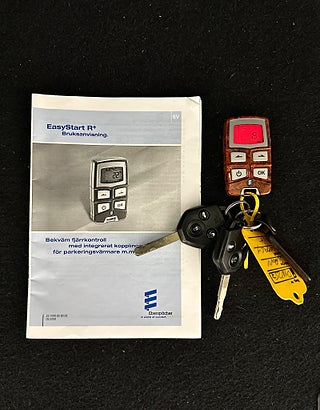 Bilen har fjärrkontroll med integrerat kopplingsur för parkeringsvärmare m.m.