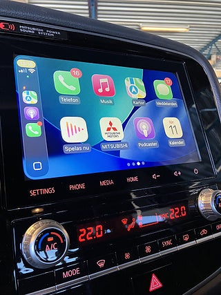 En nästintill fullutrustad Mitsubishi Outlander med Businesspaket! Detta är en Plug In-Hybrid/laddhybrid med fyrhjulsdrift, automatisk växellåda och 224 hk. En stor SUV med enorma utrymmen och exklusiv interiör, med väldigt snygg skinnklädsel med vita sömmar och svart innertak. En riktigt snygg svartmetallic kulör med en liten touch av lila som kommer fram i starkt solsken.
