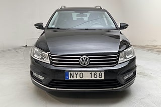 “En Volkswagen Passat kombi från 2014 med bensin/gas-motor. Välutrustad med bland annat backkamera, öppningsbart panoramatak och dragkrok. Nybesiktigad och behöver inte besiktas förrän november nästa år.”