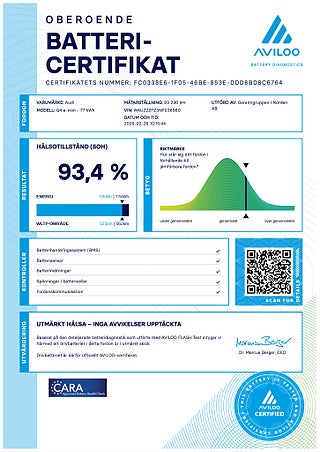 Batteritest utfört 2026-01-26/9326mil med certifikat: Batteriet har mycket hög kvarvarande kapacitet. Räckvidd i nivå med bilens ursprungliga räckvidd, laddningen går snabbt och god prestanda även vid kyligt väder.